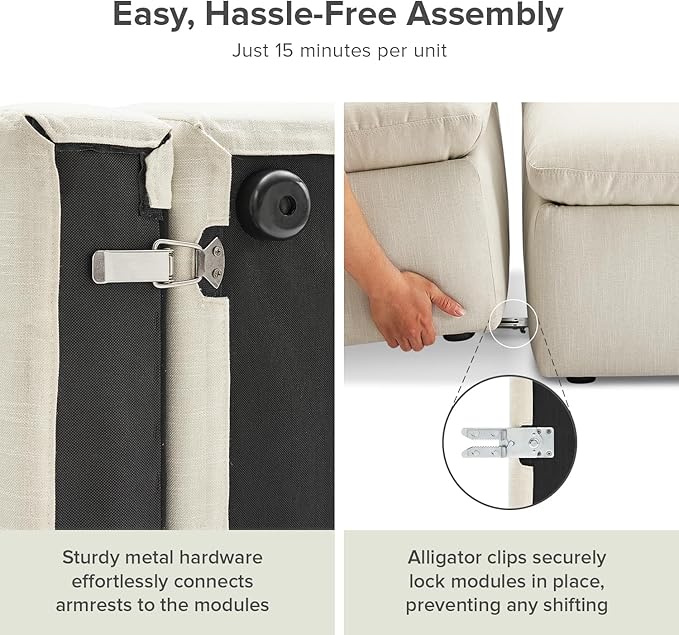 - Durable Build & Quick Assembly: FSC-Certified wood frame. Built to last, each seat supports up to 300 lbs, offering long-term durability without sacrificing comfort. Setup is easy, with a quick 15-minute assembly per unit, that locks everything securely in place, so you can enjoy your new couch without delay
