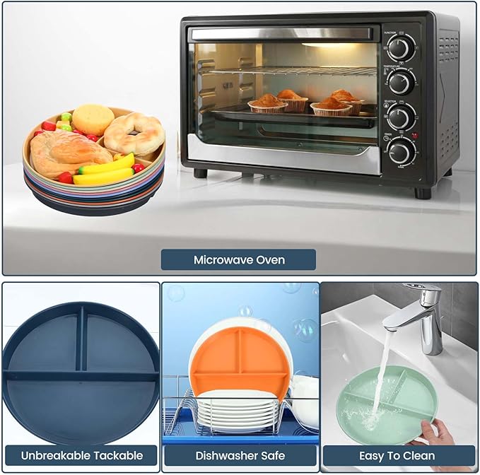 - 【Microwave & Dishwasher Safe】- Our plates are lightweight, unbreakable, and dishwasher safe, making them perfect for busy families and individuals on the go. They are also microwavable, allowing for easy reheating of meals.