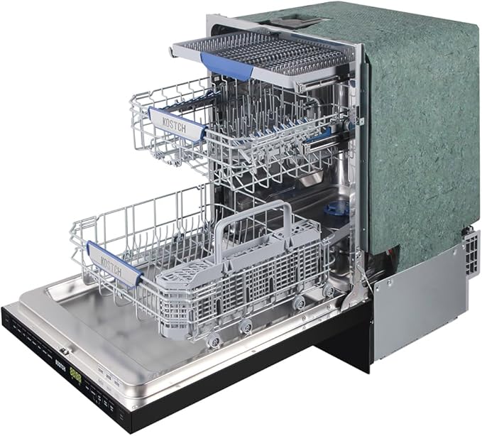 - Featuring 3 high-performance spray arms—Top, Upper, and Lower—the KOSTCH dishwasher ensures complete coverage for a thorough wash. The multi-directional water jets reach every corner of your dishes, effectively removing food residues and stains. No matter where items are placed, they’ll come out clean and shiny.
