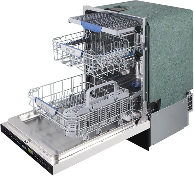 - Featuring 3 high-performance spray arms—Top, Upper, and Lower—the KOSTCH dishwasher ensures complete coverage for a thorough wash. The multi-directional water jets reach every corner of your dishes, effectively removing food residues and stains. No matter where items are placed, they’ll come out clean and shiny.