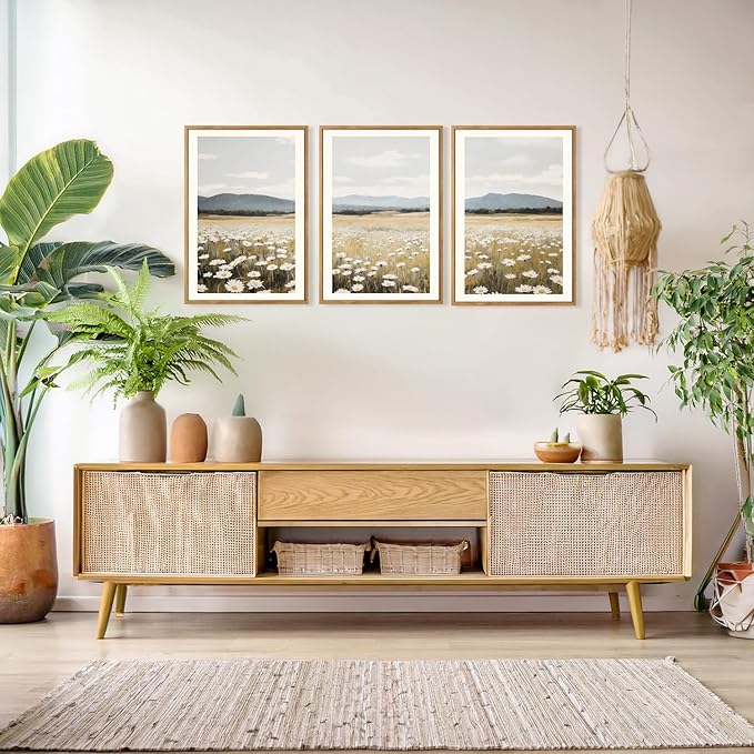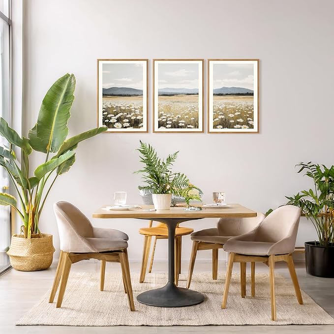 - ➤Charming Daisy Framed Wall Art: This floral wall picture features delightful daisy motifs in a charming watercolor style, creating a fresh and inviting atmosphere. Each piece measures 16x24 inches (40x60 cm), and the set includes three canvases for a stunning visual impact that enhances any modern or rustic home decor.