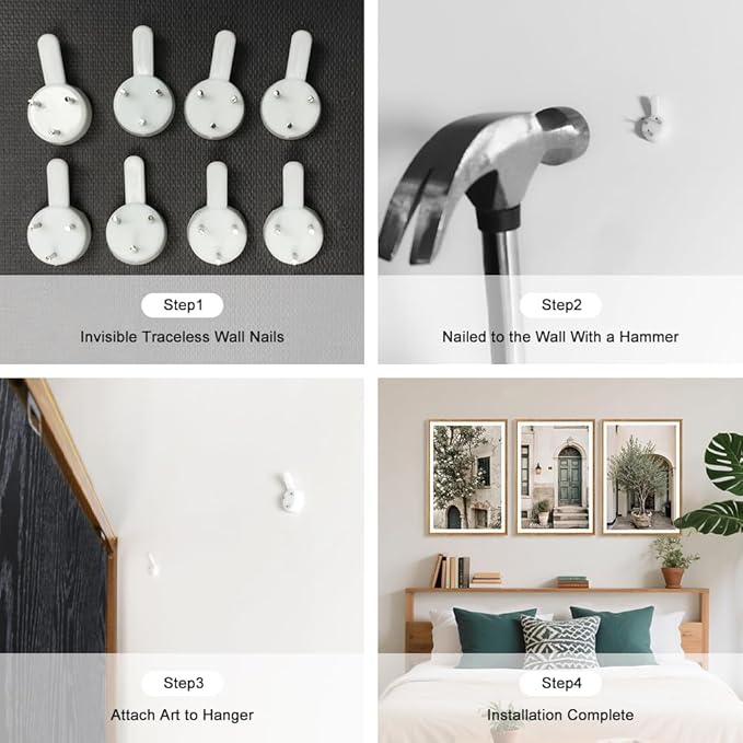 - 【Easy To Hang】This set includes three 16×24 inch (40×60 cm) canvases, Each photo come ready to hang with metal hooks and non-marking nails, making installation a breeze. You can have these charming artworks up on your walls in just a few minutes, instantly transforming your space.