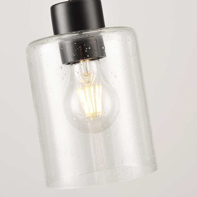Black Pendant Lights Kitchen Island - Seeded Glass Pendant Light Fixture Multiple Stems Rods 3 Units 12 Inch 3 Units 4 Inch (2 Pack Black Seeded Downrod)