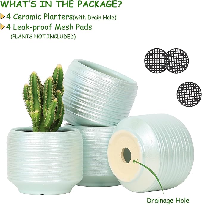 - Compact Size for Versatile Use: This set includes four 3-inch mini ceramic plant pots, ideal for small indoor plants such as cacti, baby greenery, or mini decorative plants. These small plant pots are suitable for desks, windowsills, bookshelves, or kitchen counters.