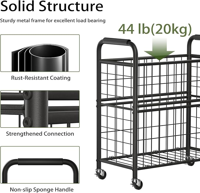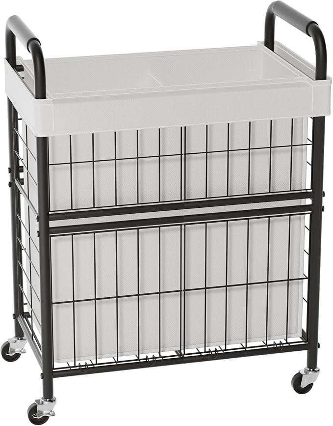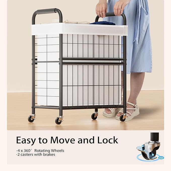 - Premium Quality Materials Laundry Hamper with 2 Compartment: The wheeled laundry sorter cart's frame is high-strength steel with an anti-rust surface. Laundry basket is made of thickened oxford fabric.