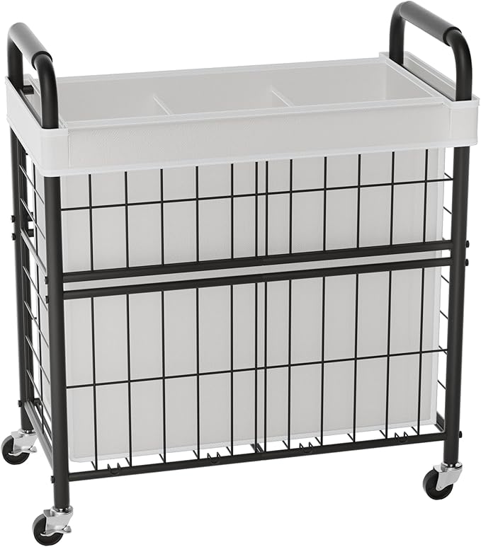- Premium Quality Materials Laundry Hamper with 3 Compartment: The wheeled laundry sorter cart's frame is high-strength steel with an anti-rust surface. Laundry basket is made of thickened oxford fabric.