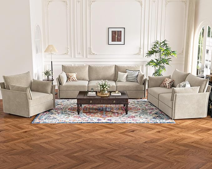 - 💡 Premium Chenille Fabric - The modern sofa is upholstered in premium chenille fabric that feels luxurious to the touch, offering both comfort and durability. The material is not only soft and inviting but also non-pilling and won't stain, ensuring long-lasting quality.