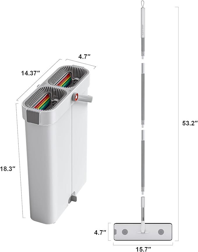 - [360° Spin ] Rotation flat mop-head can reach to any corners and those "under-the-whatever" places, much suitable to be a wet dry mop for walls, wall cleaner . There are suction cups on the bottom of the bucket to keep it from tipping over.