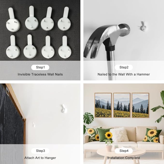 - 【Alpine Sunflowers Wall Art】The size of the rustic mountain landscape framed canvas wall art set is: 16x24 inchx3pcs (40x60cmx3pcs).Modern Wildflower prints artwork use high-quality environmentally friendly ink and high-quality canvas, and use the industry's top printers for layered spraying, the colors are delicate and the transition is natural.bring you visual enjoyment.