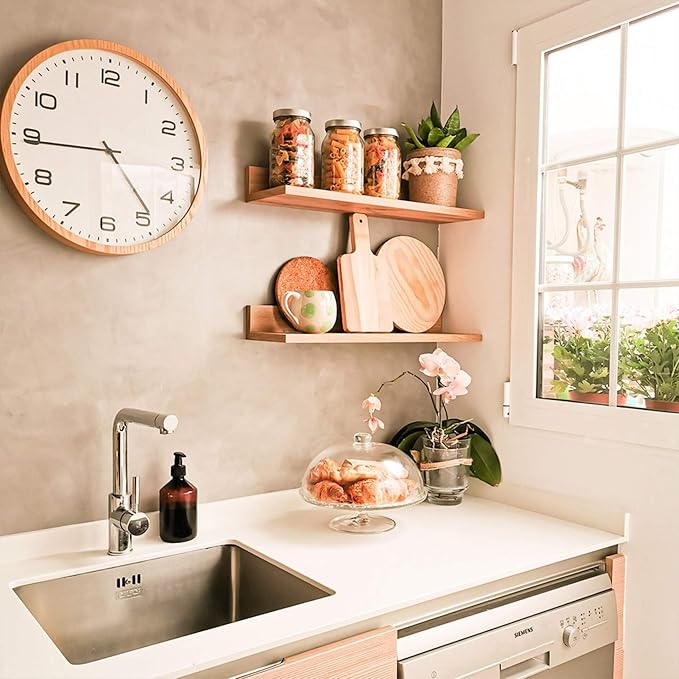 - VERSATILE: The Rachele shelves are fixed to the wall without the use of brackets that take up additional space. They are fixed by special iron pins inserted into the shelf's surface. Ideal for the hallway, bedroom, or for keeping everything handy in the kitchen.