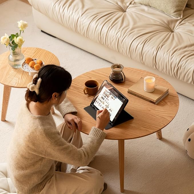 - 【100% Premium Solid Oak】 This Round coffee table is made entirely from FAS-grade North American oak, ensuring superior quality, including both the tabletop and legs. The rich, natural wood grain enhances its elegant appearance. Unlike other products, no auxiliary or artificial materials are used, providing a longer lifespan without deformation.