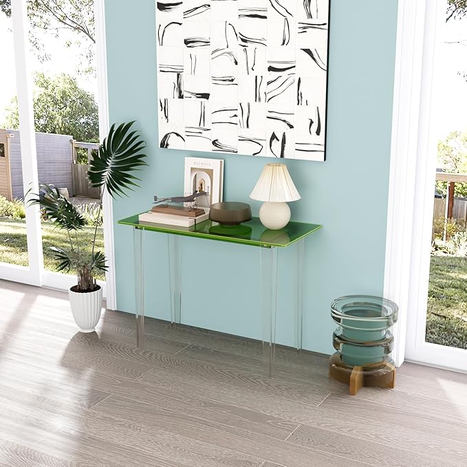 Acrylic Desk, Modern Study Table for HomeOffice-Extended Surface Multi-Purpose Console & EntrywayTable, Sturdy Lightweight Design (42.5-inch, Green)
