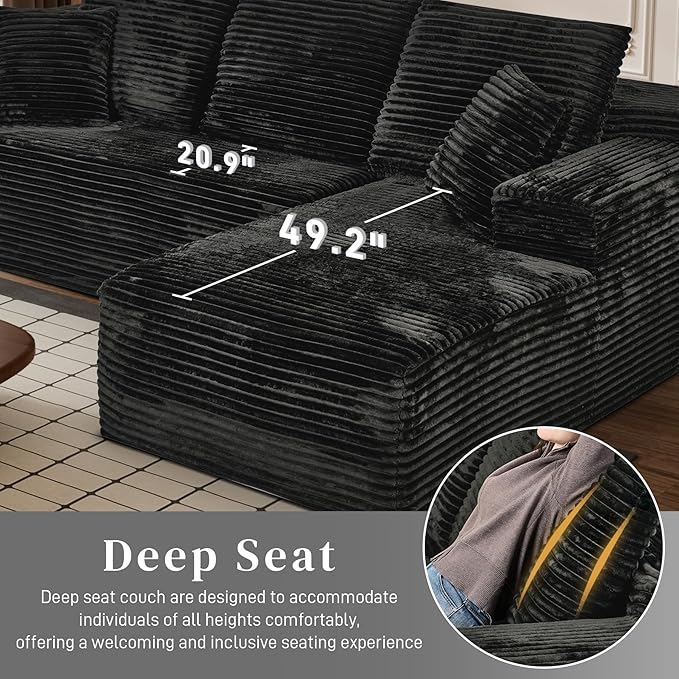 - 【Plush Corduroy Couch Sectioanal】Our compressed sofa set is wrapped in premium corduroy, giving you unrivaled softness and warmth. The upgraded material offers better breathability and stain resistance, making the fluffy couch easy to care for and clean. The unique texture and soft sheen make it stand out, providing gentle pampering no matter the season