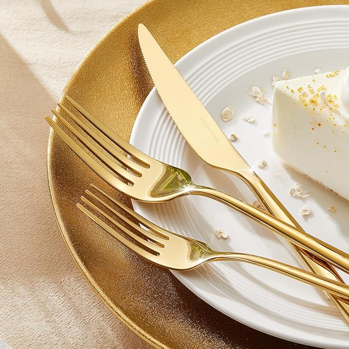 KINGSTONE Silverware Set, 20-Piece Flatware Set Cutlery Set Premium 18/10 Stainless Steel, Tableware Include Forks Knives Spoons for Home Kitchen Restaurant Wedding, Dishwasher Safe, Gold