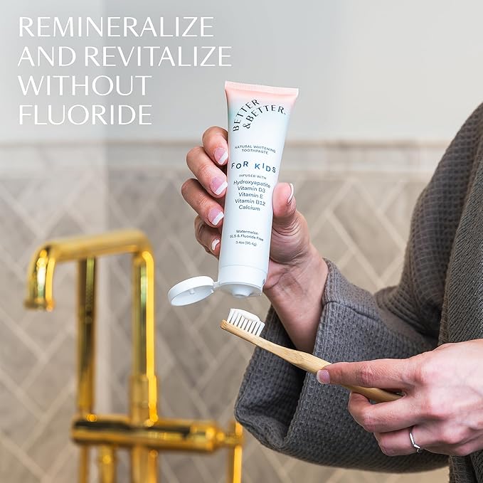Better & Better Kids Toothpaste | Natural Hydroxyapatite Toothpaste Infused w/Calcium & Vitamins D, E, B12 | Fluoride & SLS Free for Sensitive Brushers | Watermelon Flavor | 3.4oz, 1 Pack