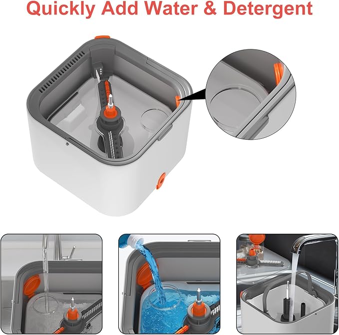 - DETACHABLE INNER BUCKET: Square spin mop with removable inner bucket is equipped with a water filler and spout, which can be quickly refilled, changed, added to the detergent, but also can be quickly poured and cleaning, avoiding any hassle with dirty water