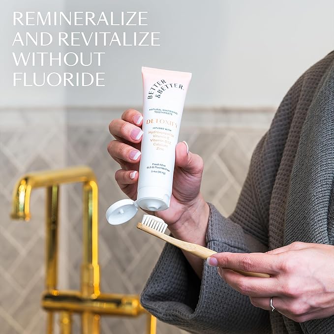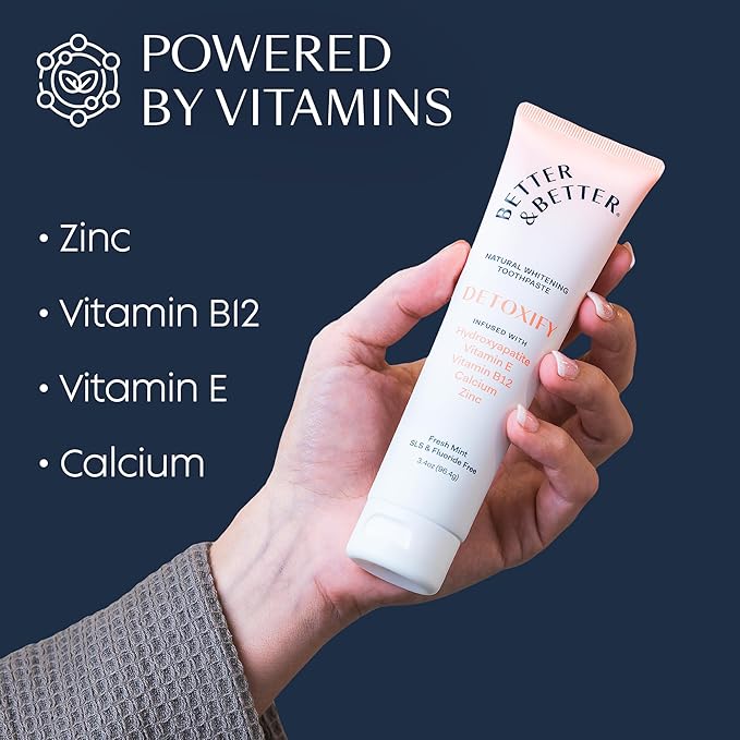 - Infused with Hydroxyapatite, Vitamin E, B12, Calcium & Zinc: Detoxify delivers a deeper clean with a powerful blend of enamel-supporting and bacteria-fighting nutrients. Hydroxyapatite helps remineralize enamel, while Vitamin B12 and Zinc support immune health, help soothe canker sores, and fight bad breath by targeting odor-causing bacteria. Dentist-approved and fluoride-free for everyday defense.