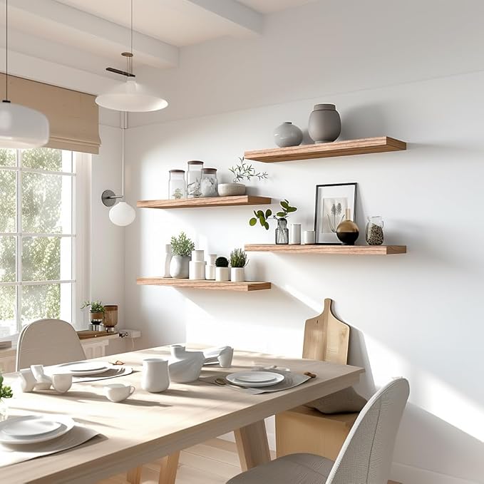 - STORAGE FLOATING SHELVES - Our floating shelves provide extra storage space, they can serve as home storage shelves, makes a nice addition and maximize the role of your wall.