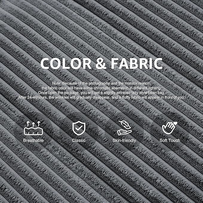 Bean Bag Chairs for Adults Giant Bean Bag Chair Memory Foam BeanBag Chair Big Bean Bag Sofa with Filler Faux Fur Fireside Beanbags Lazy Sofa for Living Room Bedroom Dorm Office (Grey Corduroy)