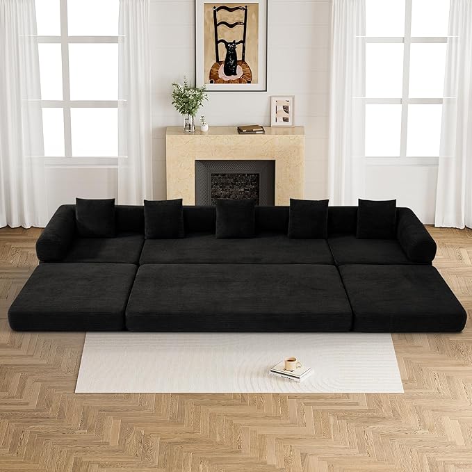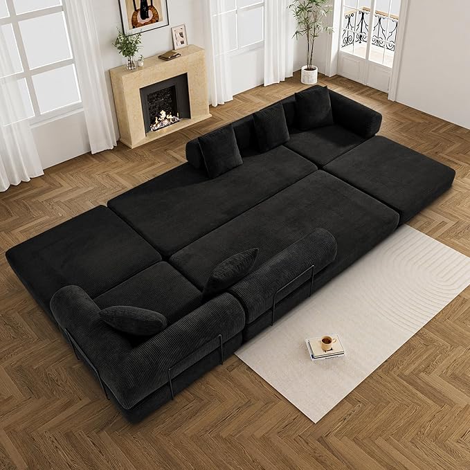 - Black Corduroy Boneless Couch with Generous Dimensions: With generous dimensions of 78.5"L x 37"W x 27"H as a sofa and 78.5"L x 74"W x 8.25"H when converted into a sleeper, this sofa bed queen offers ample space for lounging, sleeping, or entertaining guests. Its spacious design ensures that you and your guests enjoy optimal comfort, making vacuum sealed Boneless couch the perfect foldable sofa bed for any home.