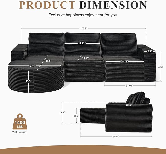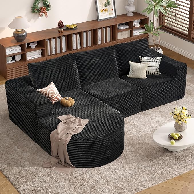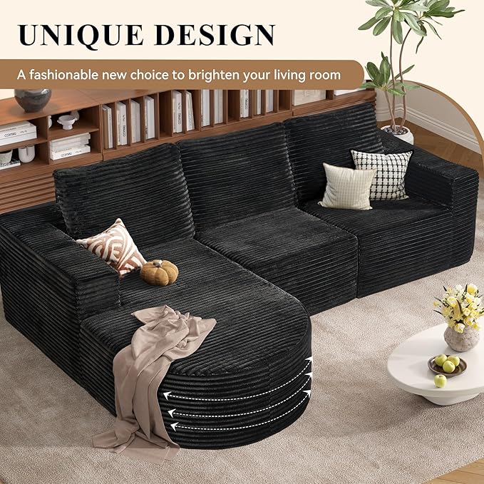 Modular Sectional Sofa with L-Shape Chaise,Cloud Sectional Modern Sleeper Couch with Deep Seat,Sponge Compression Sofas No Assembly Required(Plush Corduroy Fabric) 1PCS