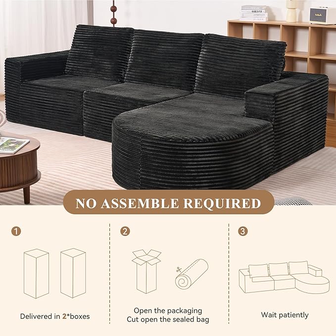 - NO ASSEMBLY REQUIRED: "Say Goodbye to Furniture Setup Hassles!" Delivered as a sofa in a box, this convertible sofa bed is vacuum-packed for easy handling. Once unwrapped, it “pops” into shape, needing just a few gentle pats to enhance its resilience and fluffiness. Fully restores within 72 hours for the best lounging experience.