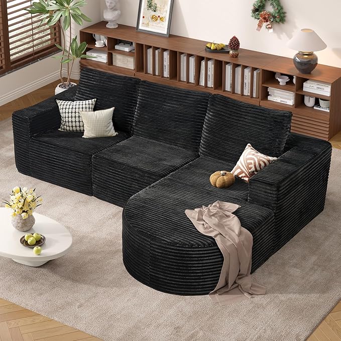- L-SHAPE MODULAR SOFA: "Maximize Space with Style".This modular sectional sofa features a sleek L-shaped design that fits perfectly against walls, optimizing your living room sofa setup. Its unique curved sofa structure adds a touch of sophistication that sets your space apart.