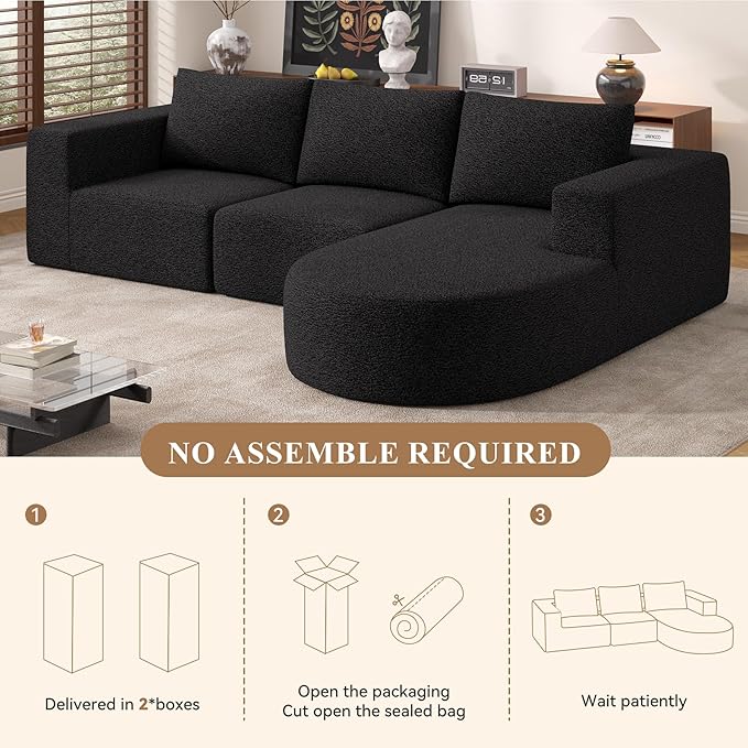 Modular Sectional Sofa with L-Shape Chaise,Cloud Sectional Modern Sleeper Couch with Deep Seat,Sponge Compression Sofas No Assembly Required(Black-Sherpa Fabric) 1PCS