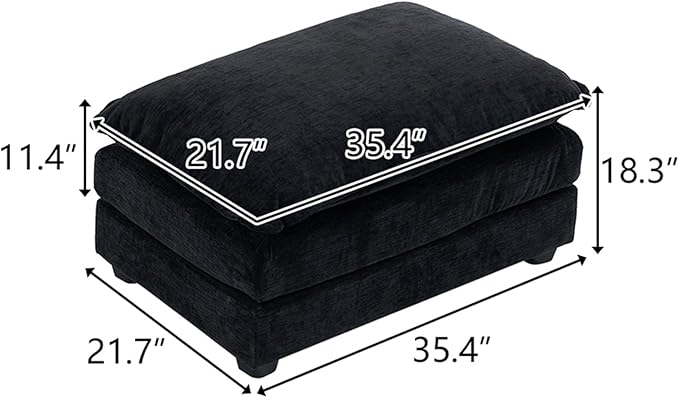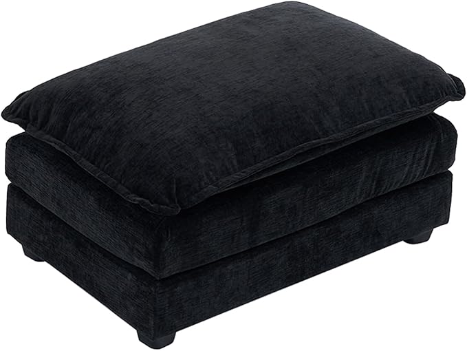 Karl home Modular Ottoman for Sectional Sofa, Chenille Comfy Upholstered Furniture for Living Room, Apartment, Studio, Office, (Ottoman, Black)