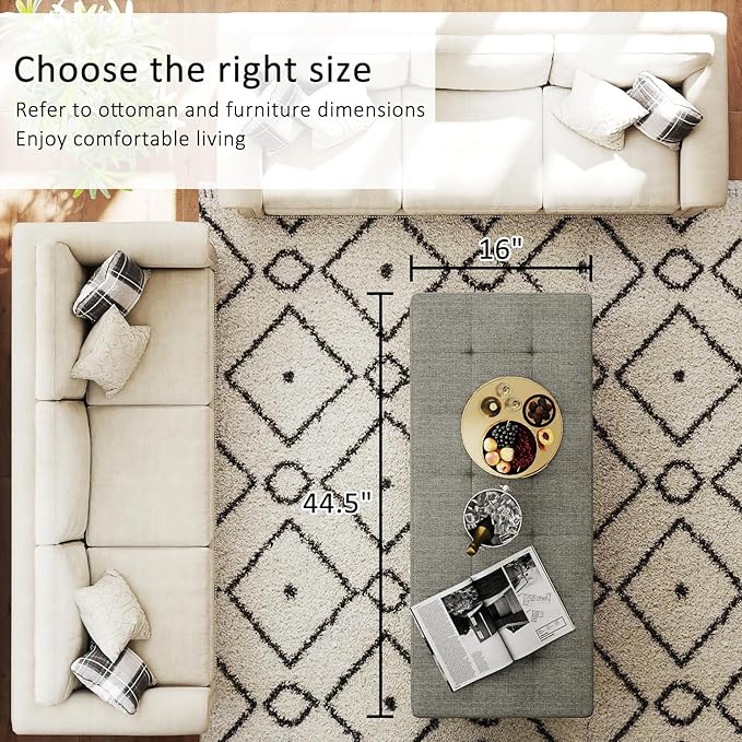 - Strong Construction: The tufted ottoman is made of high end natural rubber wood, sturdy structure without shaking, easy to bear 400 pounds. With large storage space for books, snacks, cups and other items, make your home more tidy