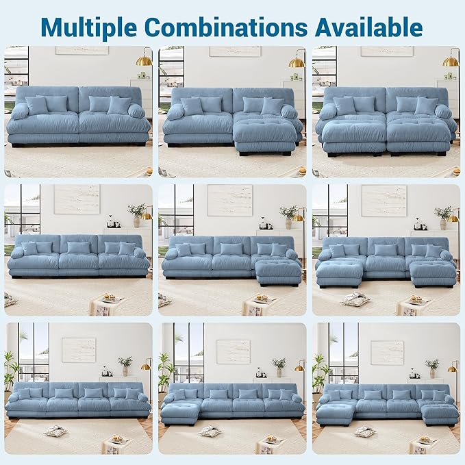 Modular Sectional Sofa, Comfy Cloud Couch Oversized Loveseat with Ottoman, Sectional Couches for Living Room, Modern Chenille U Shaped Couch, Sleeper Deep Seat Sofa with Throw Pillows, Blue