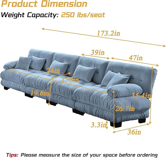 - 【Superior Comfy Cloud Couch】Upholstered of our modular sofa in high-end Chenille fabric and high-quality sponge, 2-layer thickened seat cushions offers excellent support and elasticity for your body, making it perfect for entertaining or relaxing