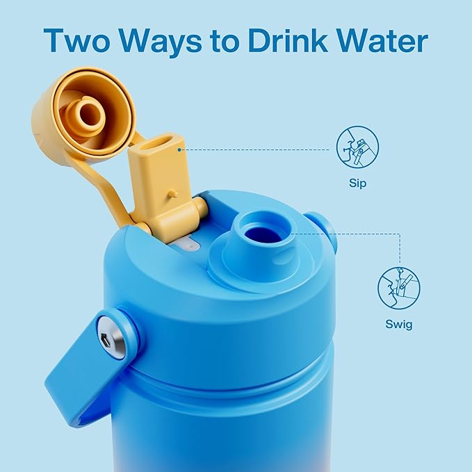 - Leakproof Water Bottle for Messy Moments: Flip-straw and twist-cap lids seal tight to prevent leaks in bags so snacks and books stay dry
