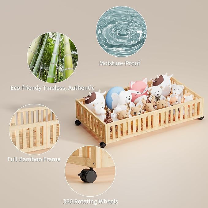 • Ventilated Design: The slatted bamboo design promotes air circulation, preventing musty odors and keeping your stored items fresh. A smart choice for under the bed storage with wheels to maintain item quality.