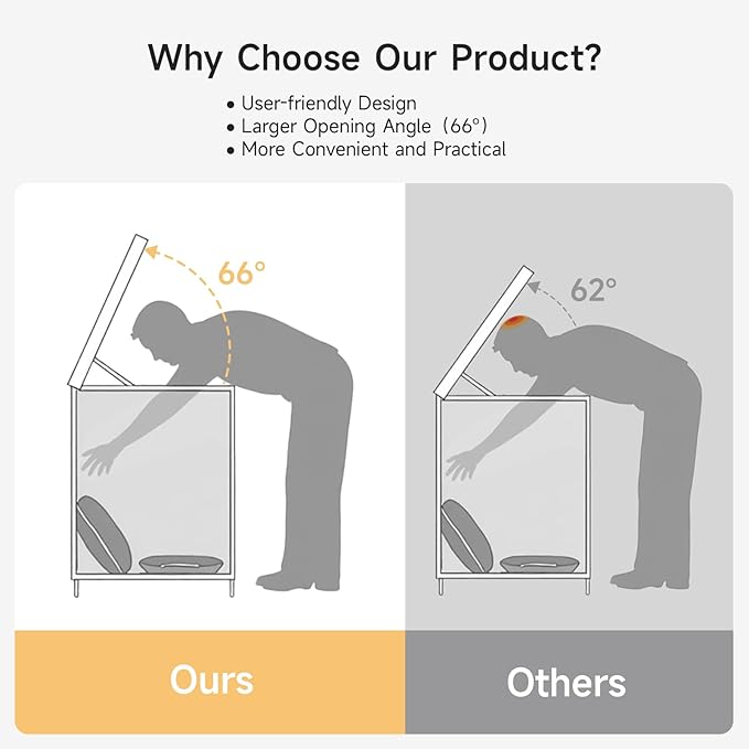 - Functional Innovation: Equipped with 200 N pneumatic pistons for smooth lid operation. The increased opening angle up to 66° ensures security by reducing the risk of head bumps during use. A widened gap reduces friction, extending the life of your deck storage box. Experience ease of use and enhanced security with every interaction, making your daily routine more enjoyable.
