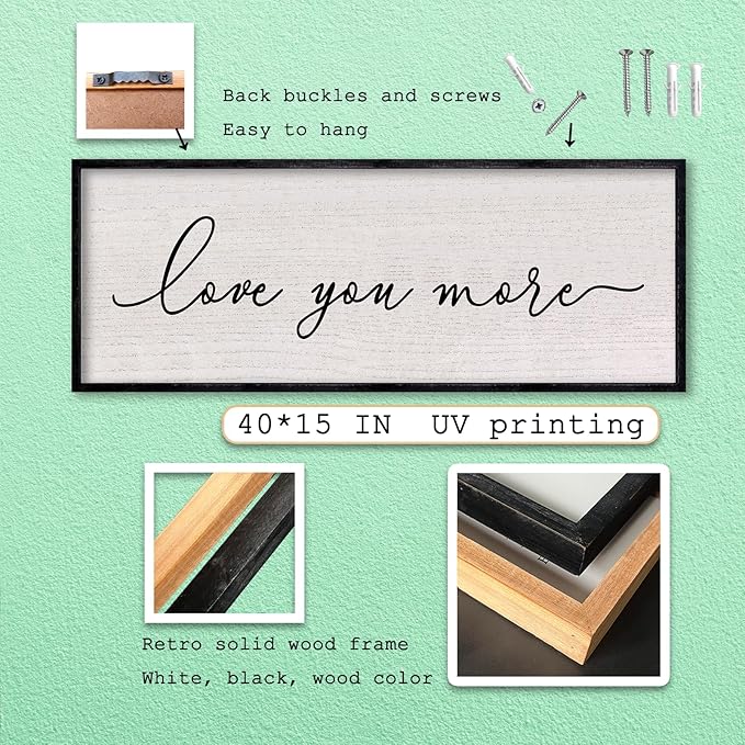 LuZhiQiang Love You More Sign Wall Decor 40"x15" for Master Bedroom Above Over Bed Large Simple Wood Framed Hanging Wall Art (Black)