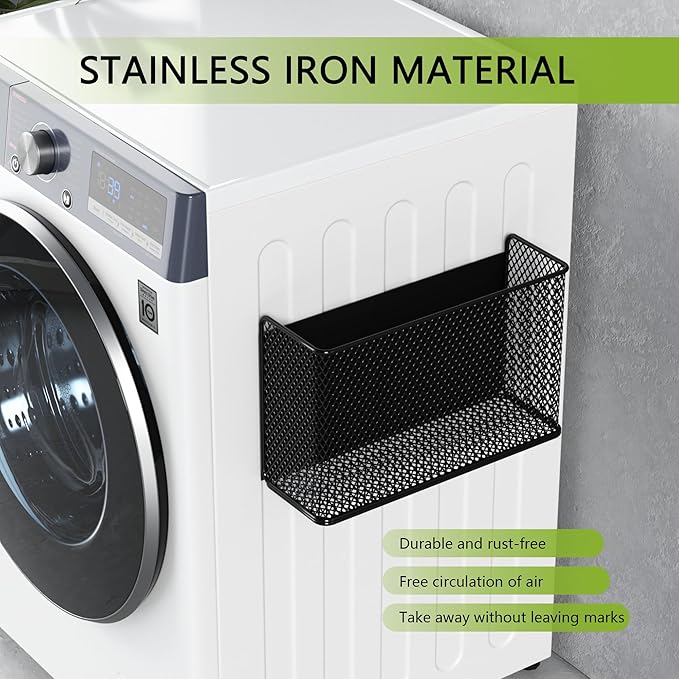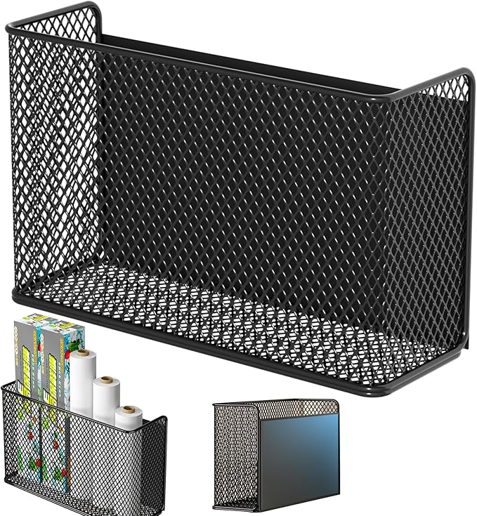 Magnetic Basket Fridge Lint Bin Dryer Ball Holder Laundry Room Organization Home Storage for Class Office School (Mesh,(1-Pack) Black/L)