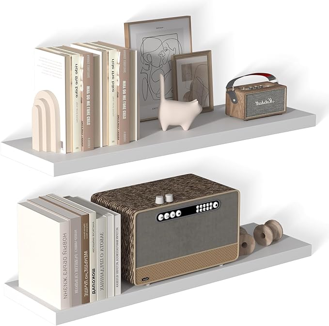 - 【Hassle-Free Setup in Minutes】- No drilling expertise needed! These wall shelves for storage feature pre-drilled holes and step-by-step instructions. Just secure the hidden brackets and slide in the shelf—effortless installation for instant organization.