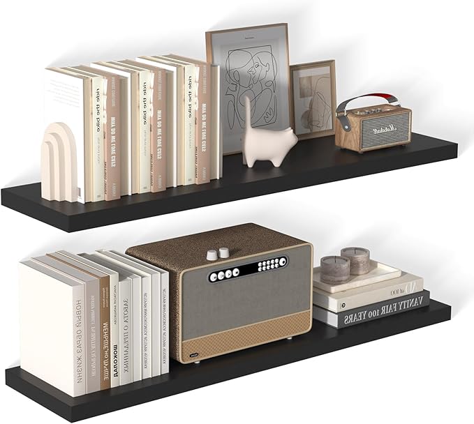 48 Inch Floating Shelf 2 Pack Large Floating Shelves for Wall No Drilling Accessories Included Deep Wall Shelves for Living Room Kitchen Farmhouse 48" W x 12" D x 1.2" Black