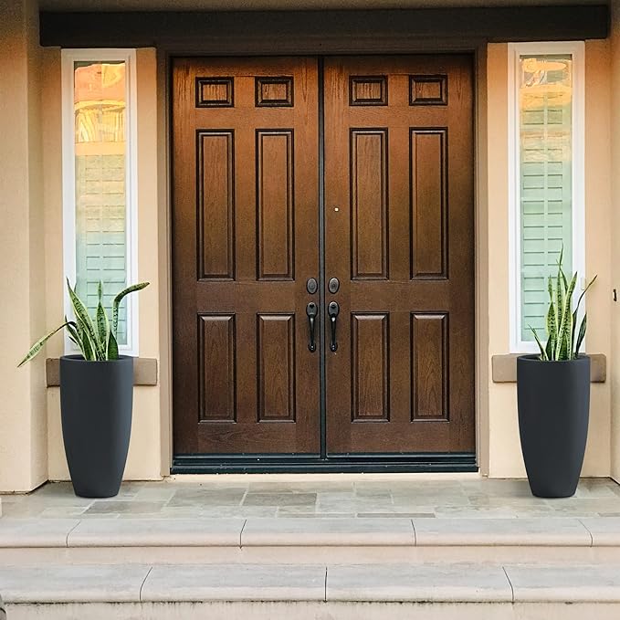 Kante 23.6" H Charcoal Concrete Tall Planters (Set of 2), Large Outdoor Indoor Decorative Plant Pots with Drainage Hole and Rubber Plug, Modern Style for Home and Garden