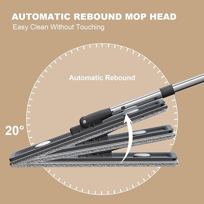 - HANDS FREE : Our flat mop head can automatically rebound within 20 degrees without touching. It can effectively prevent dirt from getting on your hands.