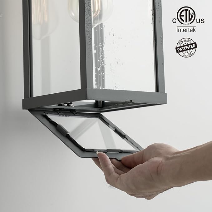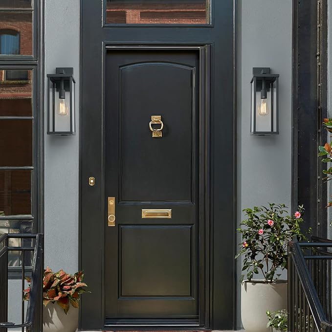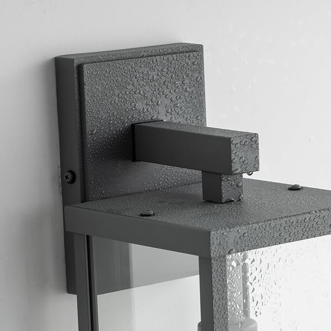 mirrea 18" Classic Outdoor Wall Sconce 1 Light in Matte Gray Rectangular Metal Frame and Clear Glass Shade Waterproof Porch Light Patio Light Pack of 2