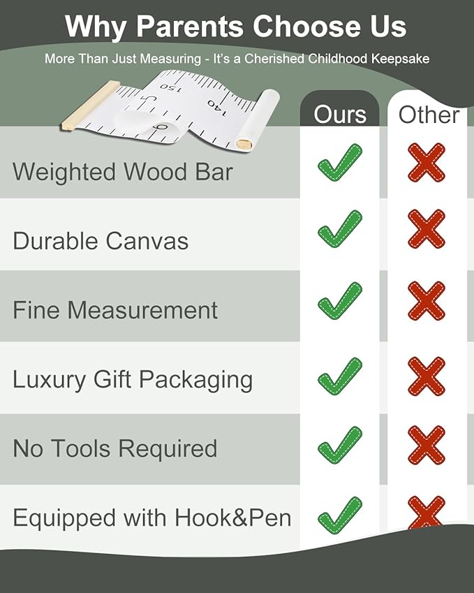 - â¨Easy-to-Use & Durable Marker â Easily record your child's height measurements using the included marker on our portable growth chart, creating lasting milestones from toddler to teen years. A baby essential that turns every kid's height tracker moment into a celebration!