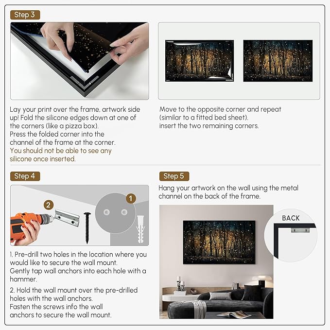 - Assembly Required: The artwork comes with the frame components unassembled. Don¡¯t worry ¡ª setup is straightforward and tool-friendly. For best results and accurate alignment, we recommend two people to ensure a smooth assembly and a stable, secure wall mount.