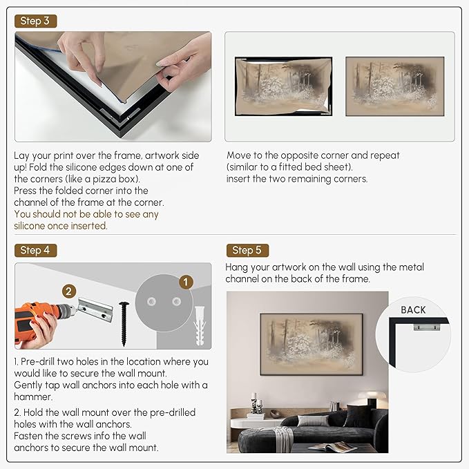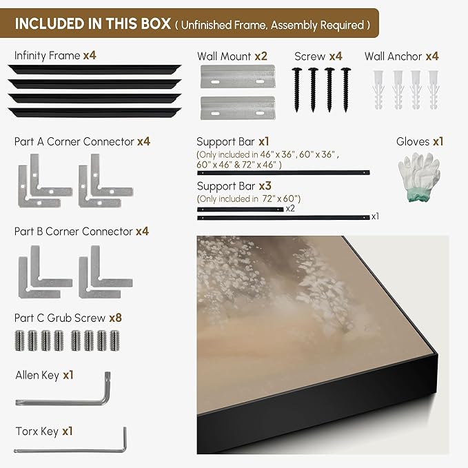 - Assembly Required: The artwork comes with the frame components unassembled. Don¡¯t worry ¡ª setup is straightforward and tool-friendly. For best results and accurate alignment, we recommend two people to ensure a smooth assembly and a stable, secure wall mount.