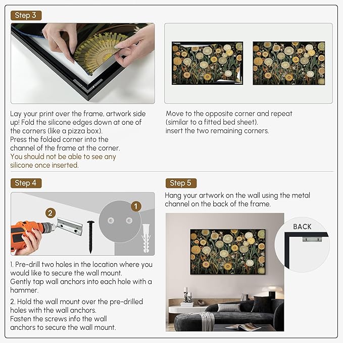 - Assembly Required: The artwork comes with the frame components unassembled. Don¡¯t worry ¡ª setup is straightforward and tool-friendly. For best results and accurate alignment, we recommend two people to ensure a smooth assembly and a stable, secure wall mount.