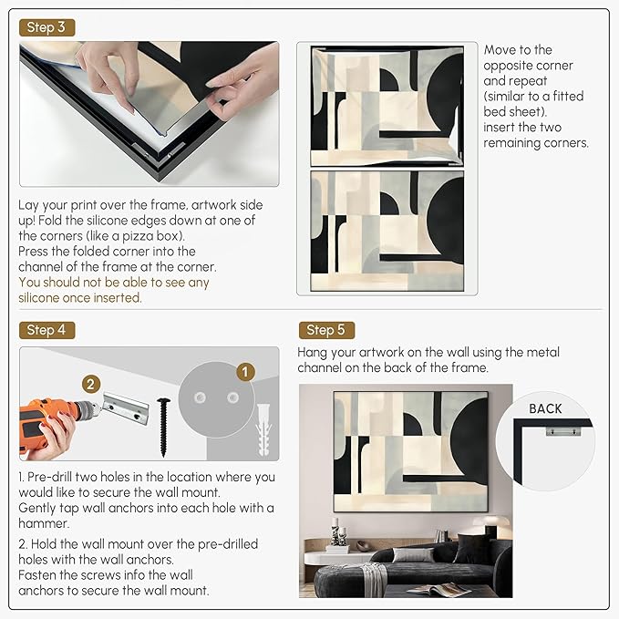 - Assembly Required: The artwork comes with the frame components unassembled. Don’t worry — setup is straightforward and tool-friendly. For best results and accurate alignment, we recommend two people to ensure a smooth assembly and a stable, secure wall mount.