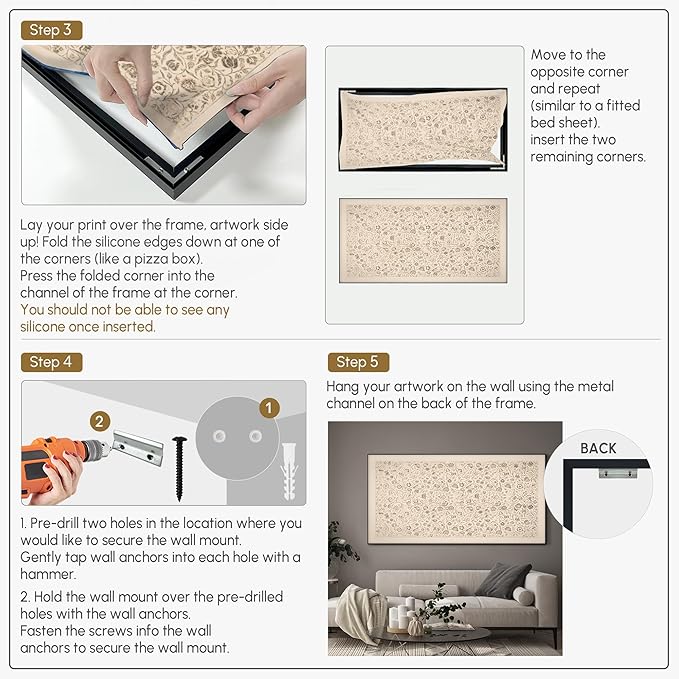 - Assembly Required: The artwork comes with the frame components unassembled. Don’t worry — setup is straightforward and tool-friendly. For best results and accurate alignment, we recommend two people to ensure a smooth assembly and a stable, secure wall mount.