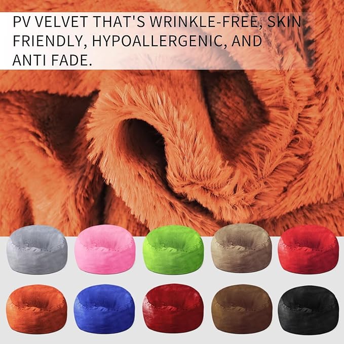 - 【Comfy,Durable,And Easy To Care】Our Giant Bean Bag Cover Is Made Of Super Soft, Furry Pv Velvet That'S Wrinkle-Free, Skin Friendly, Hypoallergenic, And Anti Fade. It Features Double-Stitched Seams And A Two Layer Zipper For Enhanced Durability And Long-Lasting Use.