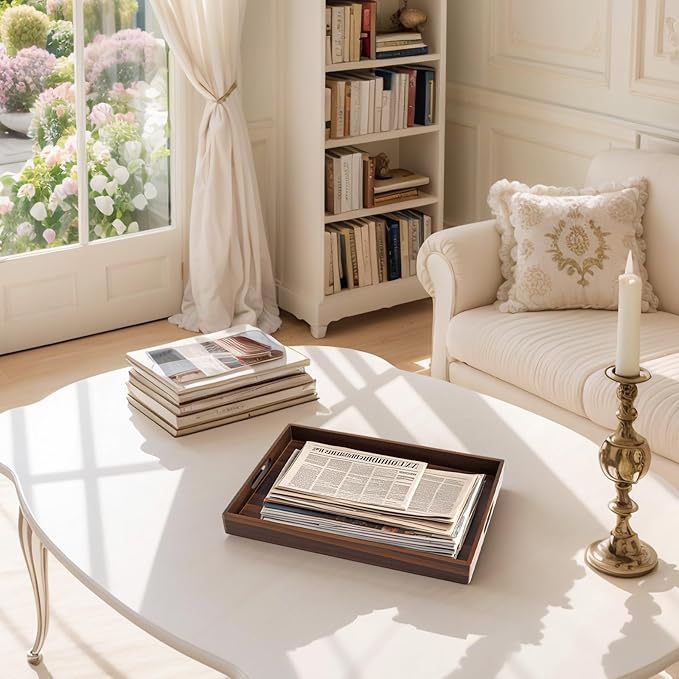 - Suitable for a Wide Range of Uses: Designed for more than just serving—use this elegant wooden serving tray to serve breakfast in bed on a lazy weekend, present snacks and drinks to guests, or organize daily essentials like remotes, keys, or candles. Its 17"x12" size provides ample space while fitting comfortably on coffee table, ottoman, kitchen counter, or vanity.